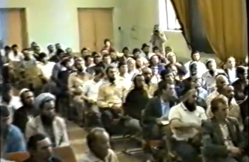 كانت القاعةُ بسيطةَ التجهيز، بلا تكييفٍ ولا مراوح، في صيفٍ خانقٍ على ضفاف الفولغا. الهواءُ ساكنٌ إلا من خفقِ المراوح اليدوية ووشوشةِ الأوراق بين أيدي الحاضرين. وجوهُهم تمثّل فسيفساءَ القوميات المسلمة: عمائمُ طاجيكية، وقلنسواتٌ داغستانية، وبدلاتٌ رماديةٌ خفيفةٌ لطلابٍ جاؤوا من موسكو. من ذلك الاجتماع لم ينجُ سوى مقطعٍ مصوَّرٍ واحد، ظلّ شاهدًا على لحظةٍ فريدةٍ في التاريخ.