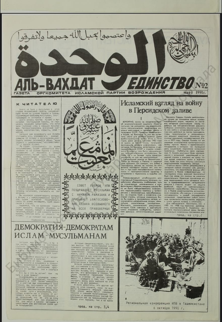 رغم أنّ الحزب كان لا يزال في طور التأسيس، فقد بادر إلى إصدار أول صحيفةٍ تعبّر عن الفكر الإسلامي في العصر السوفييتي، فكانت صحيفة الوحدة.